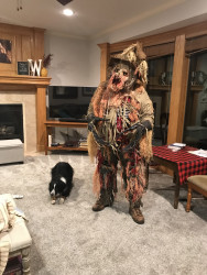 I was on a scarecrow stand. A woman’s daughter was frozen in fear below me. I heard mom say,”Get moving or you’re going to pee your pants!” I jumped off the stand (Jeepers Creepers like) and landed right next to the girl. Her scream was pure terror. I then heard her mom scream, “OMG you just peed on my shoes!!!” 2 for the price of one. Great night!!