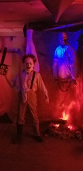 We have a home haunt every Halloween. We made tons of our own props and even automated scares. One year we had a vampire themed house and I made a 7ft tall werewolf costume for my son. He was shackled to a wall and would act like an animatronic, then burst loose to scare guests. One of our teenage visitors, literally had the pee scared out of her… once we made sure she wasn’t scared for life, we all celebrated an epic haunt experience!