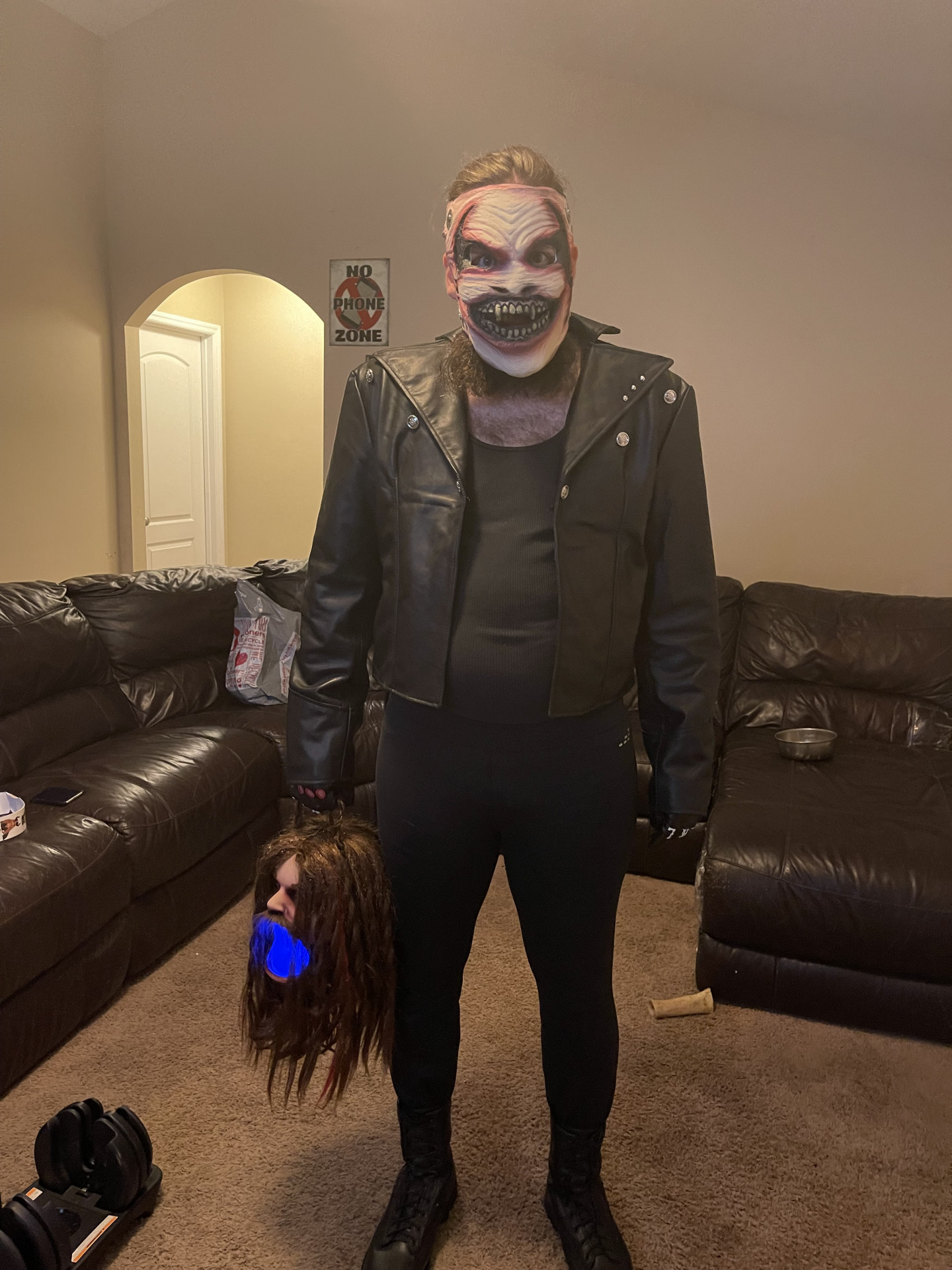 I would go with several halloweens in a row after I bought my current house. I would get my old beat to death coveralls I still had from the Marine Corps, my sketchy boots, and my Michael Myers mask and do the slow and calculated stroll around on Halloween night with the trick or treaters. I loved all of the “he even walks like him” comments I would hear. One little small joy at a time getting those reactions.