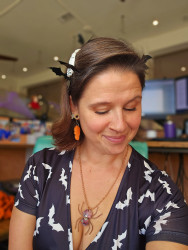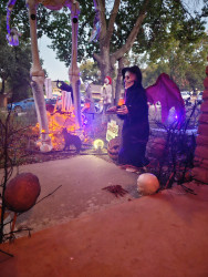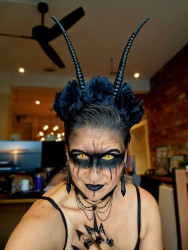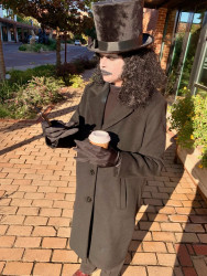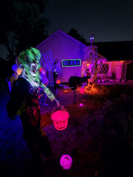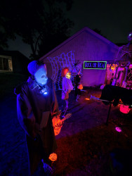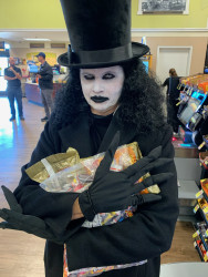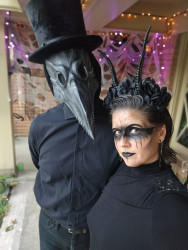 2023 and 2024, my husband and I genuinely terrified teenagers so well, they ran from my porch without wanting candy! What pride I felt! I was Nordic-inspired goth queen and he was a plague doctor.