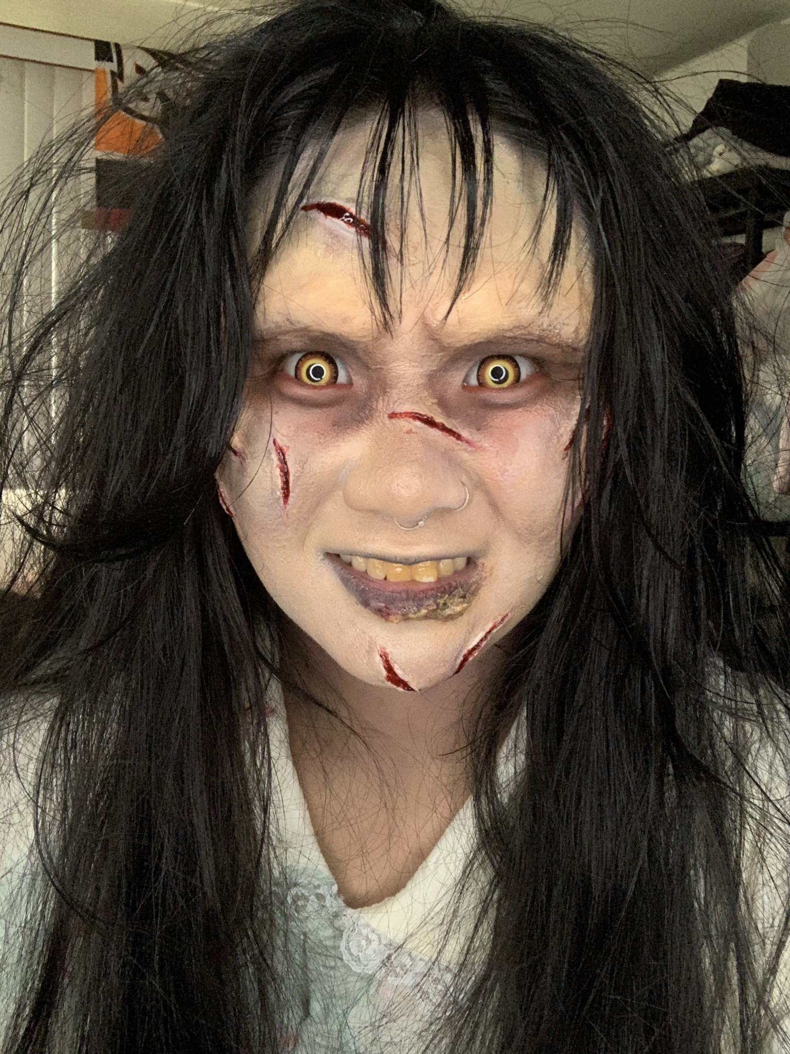 I am the face of Halloween because I love doing sfx makeup and I work hard to hand craft my prosthetics to ensure I get a good scare.