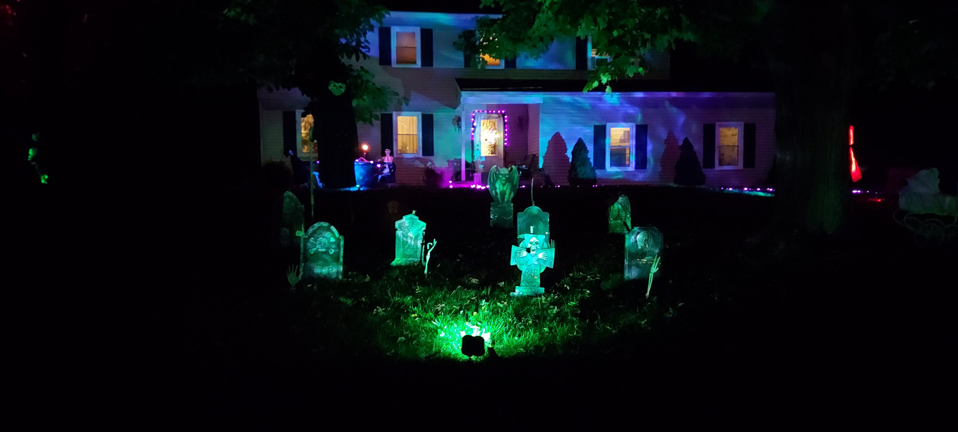 Watching the neighborhood children be braver than the parents on halloween night. Every year we create a haunted attraction at our dear mothers house for the neighborhood. One year a little boy came up with his Mom in hand who was hesitant to enter the yard. After a well planned jumping spider lurched out, she was running away while the little boy was petting the spider. A horror fan in the making.