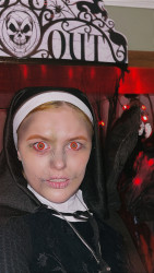 Most of my memorable Halloween experiences surround my mother, as she is an acting medium, and can communicate with spirits of many different kinds, including spirits in our home. So for us, it’s like Halloween is kindof all year. A few years ago, on Halloween, I caught an orb on camera floating by my face while filming my scary makeup at the time. We’ve also had poltergeist activity with objects being thrown down stairs by a particular child spirit that lived with us for a time, named Amelia.